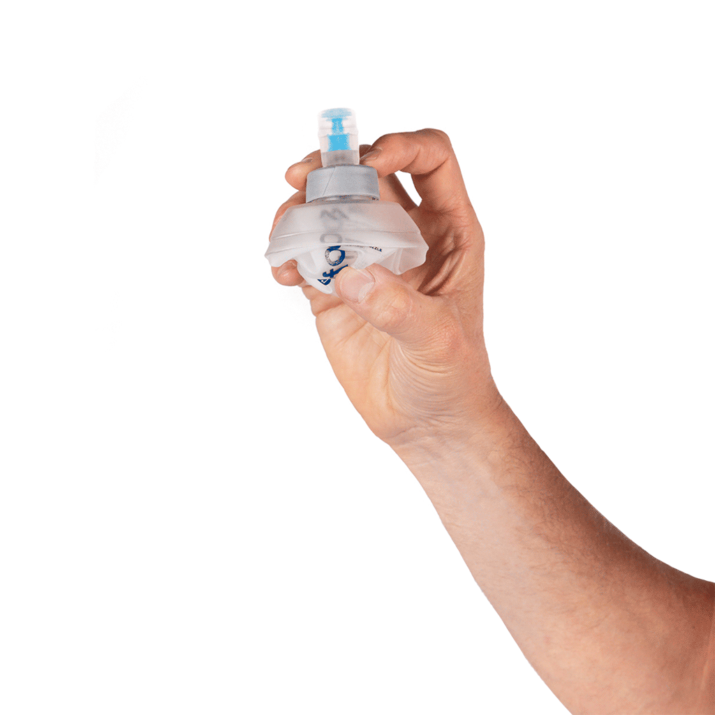 Nuestra botella flexible HYDRASOFT 250 ML es cómoda, ultra resistente, elástica, segura, fiable y se adapta a cualquier chaleco de hidratación, cinturón, o inclusive a la mano. Tiene un exclusivo diseño circular y costura plana en forma de “gota”, que maximiza su capacidad de llenado en menor altura, ideal para guardar en bolsillos laterales ó fajas. Además, para favorecer los procesos en carrera, la botella se pliega y compacta para facilitar su traslado cuando se encuentra vacía.