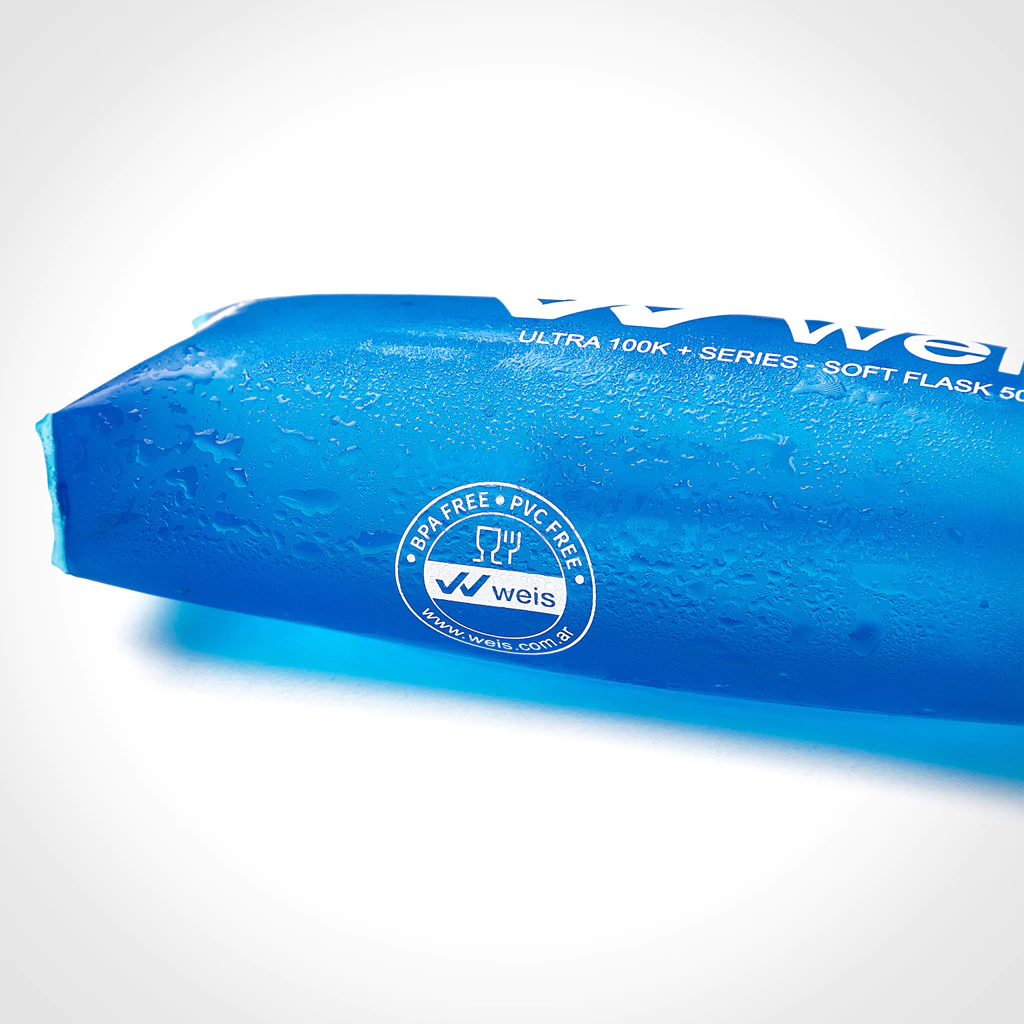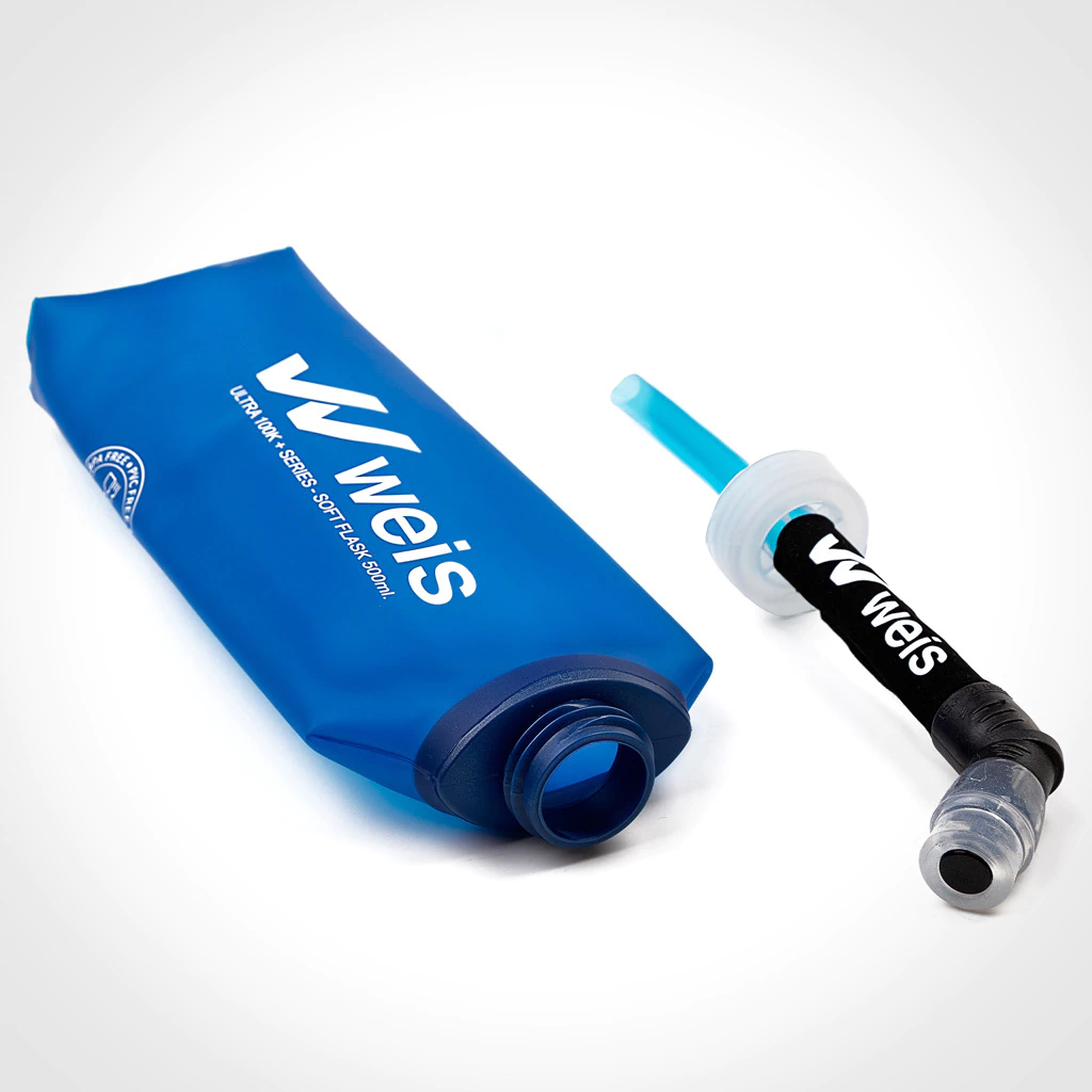 La botella flexible SOFT FLASK 500 ML CON BOMBILLA es cómoda, resistente, elástica, segura, fiable y posibilita beber mientras se corre sin ser sacada del chaleco de hidratación.